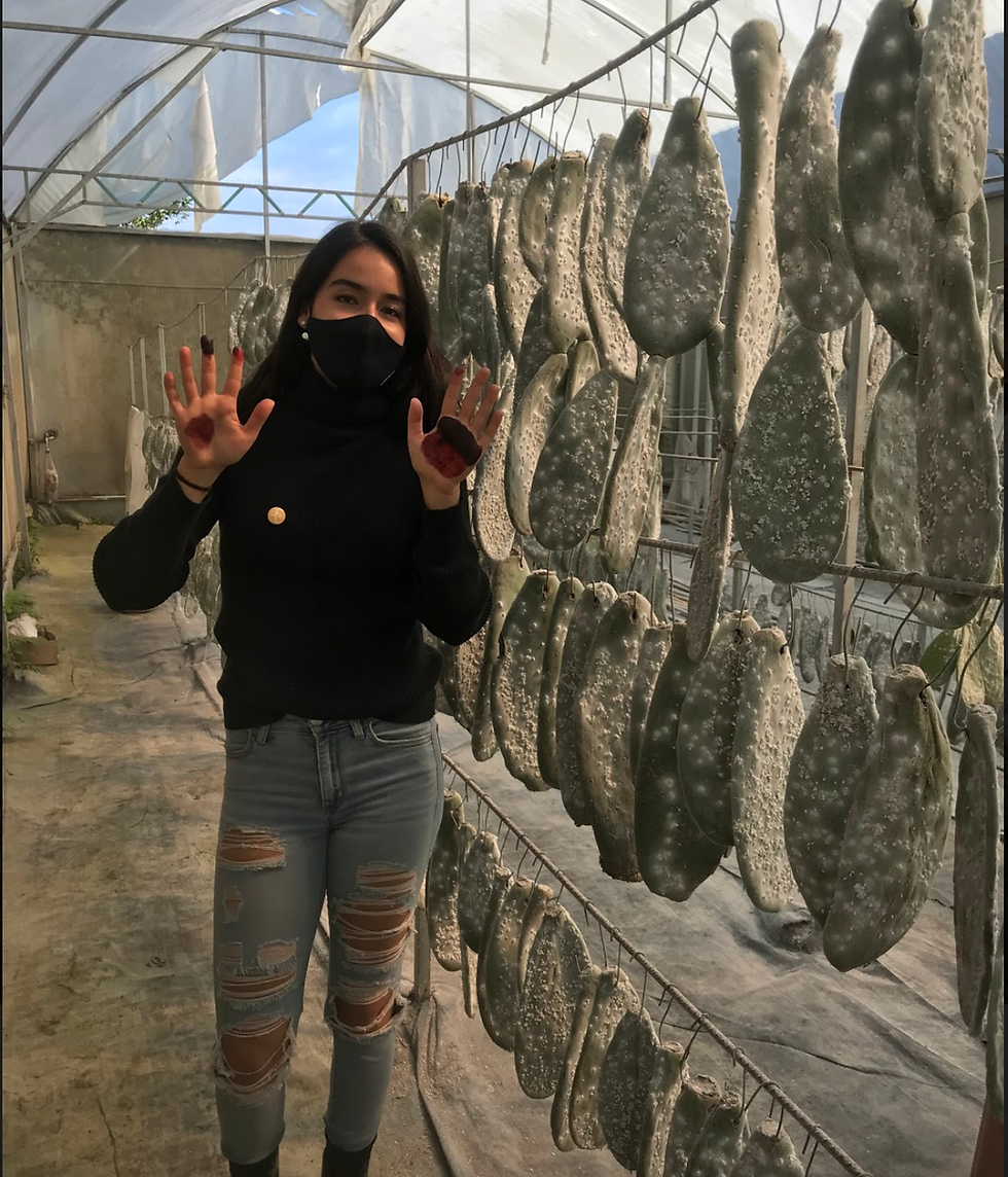 Adriana visitando el invernadero de grana cochinilla